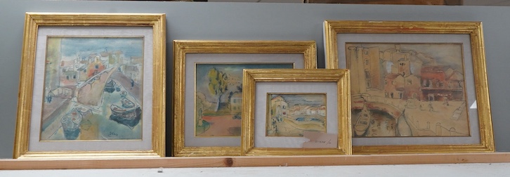 20th century school, riverscapes and parkland, a set of four mixed medias, largest 20 x 25cm