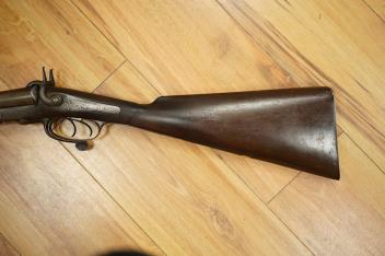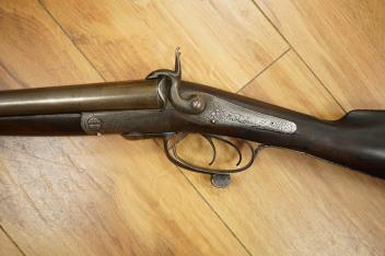 Lot 29 , A 12 bore double barrel pinfire sporting gun by John Blissett of London, with rotary locking lever and engraved back action locks