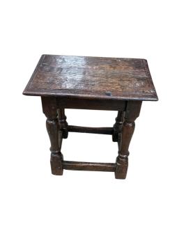 Lot 10 , A 17th century and later oak joynt stool, width 45cm, depth 29cm, height 49cm