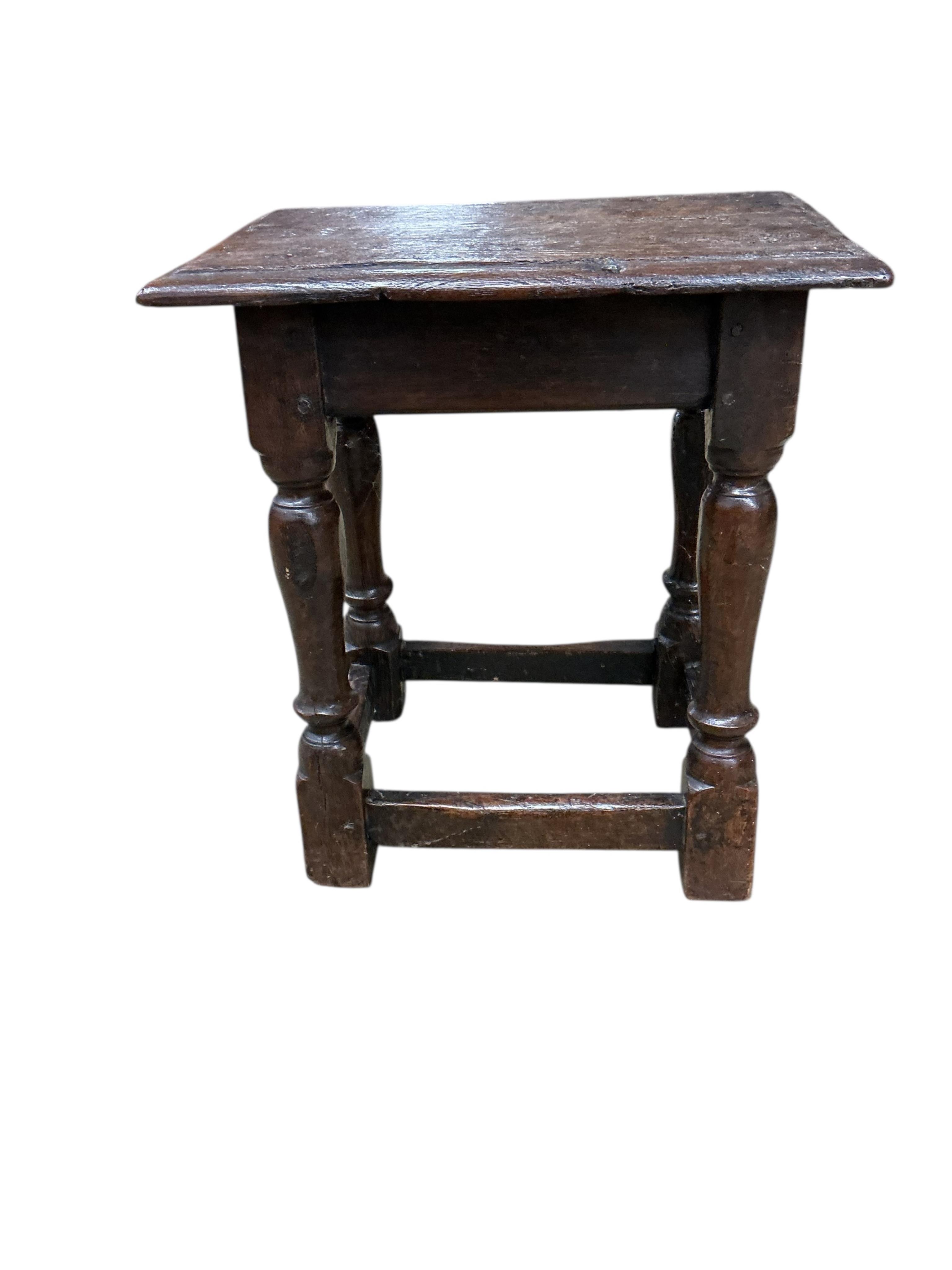 A 17th century and later oak joynt stool, width 45cm, depth 29cm, height 49cm