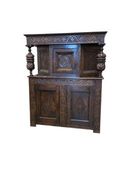 Lot 14 , A 17th century style carved oak court cupboard, width 142cm, depth 53cm, height 176cm