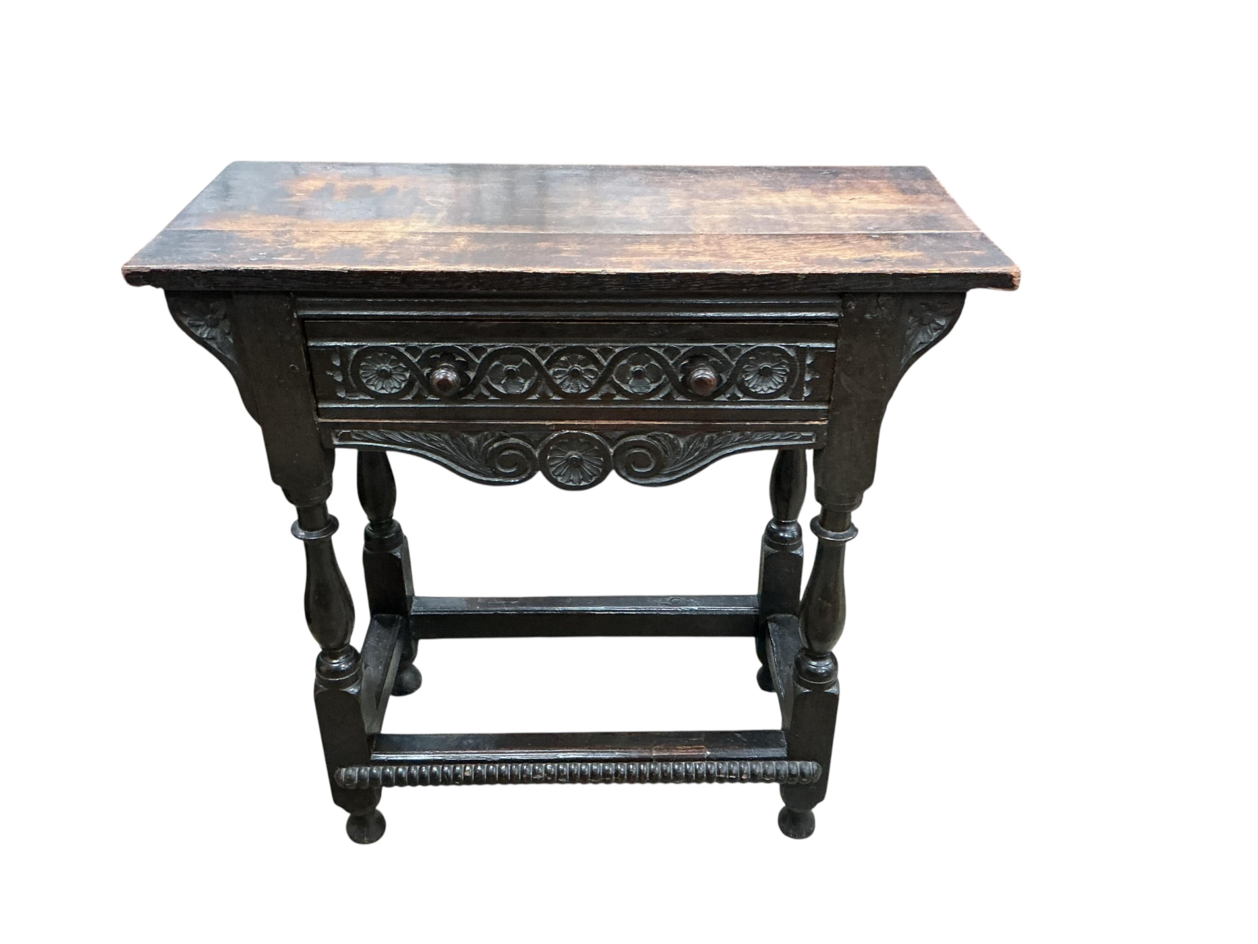 Lot 1020 , A 17th century style carved oak side table, width 74cm, depth 31cm, height 72cm