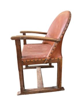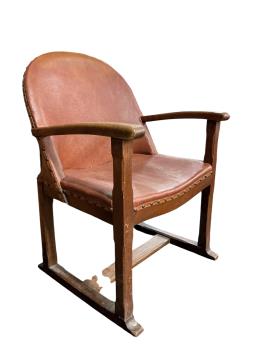 Lot 59 , A 1920's oak Arts and Crafts leather upholstered desk chair, width 57cm, depth 42cm, height 82cm
