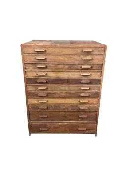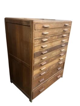 A 1930's oak eleven drawer plan chest, width 89cm, depth 62cm, height 116cm