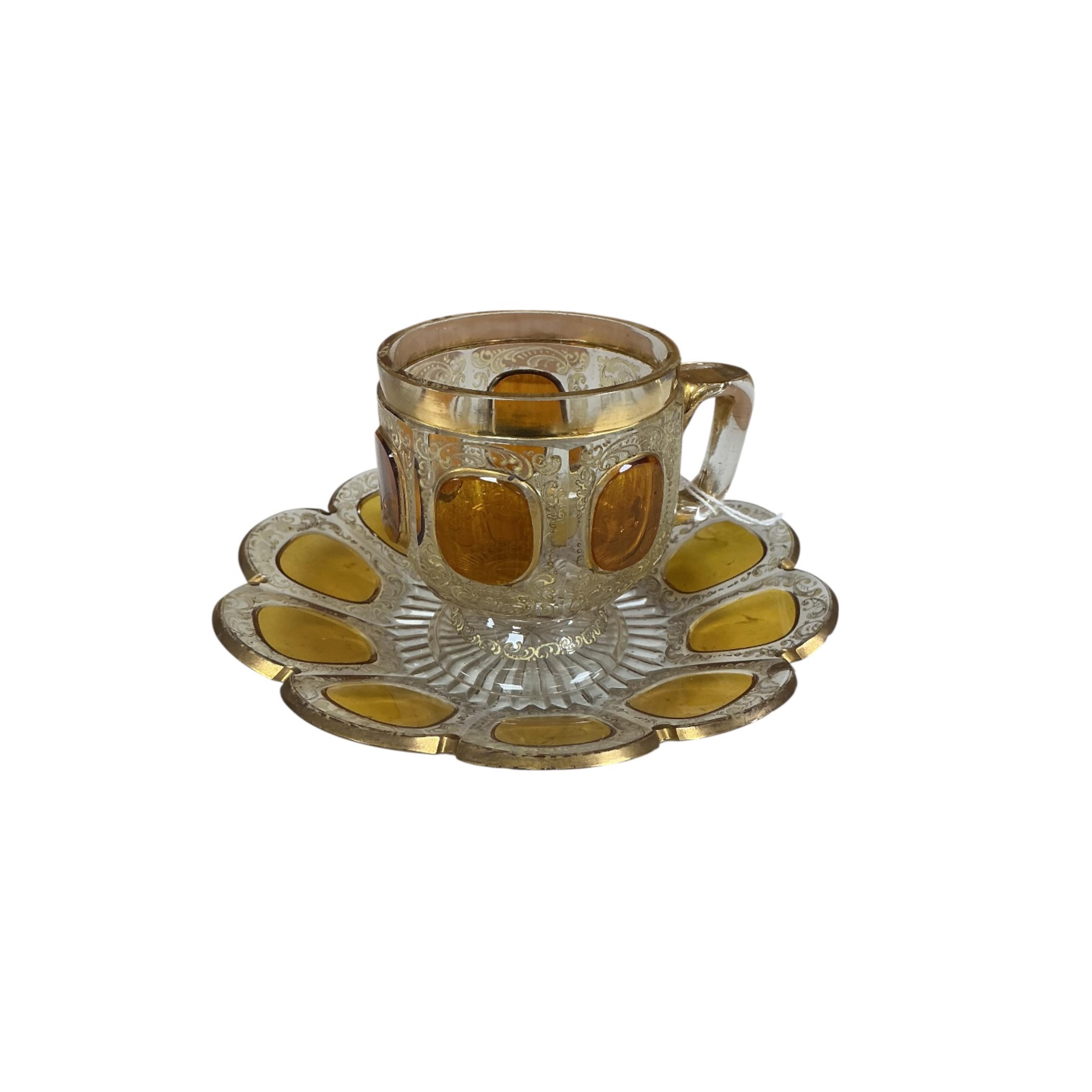 A 19th century Bohemian amber and gilt decorated glass cup and saucer
