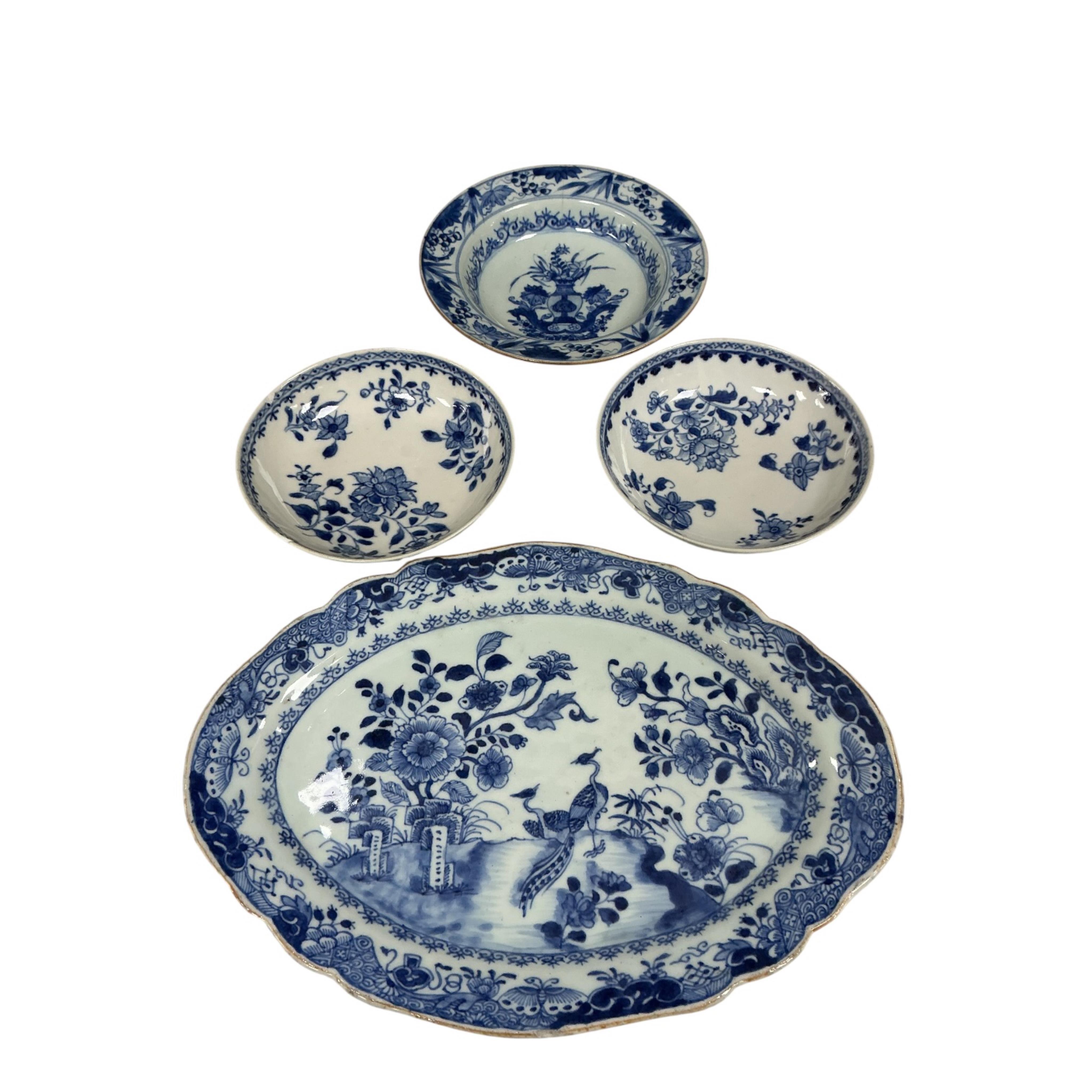 Lot 1314 , A 19th century Chinese blue and white oval serving dish and three other blue and white dishes, largest 30cm wide