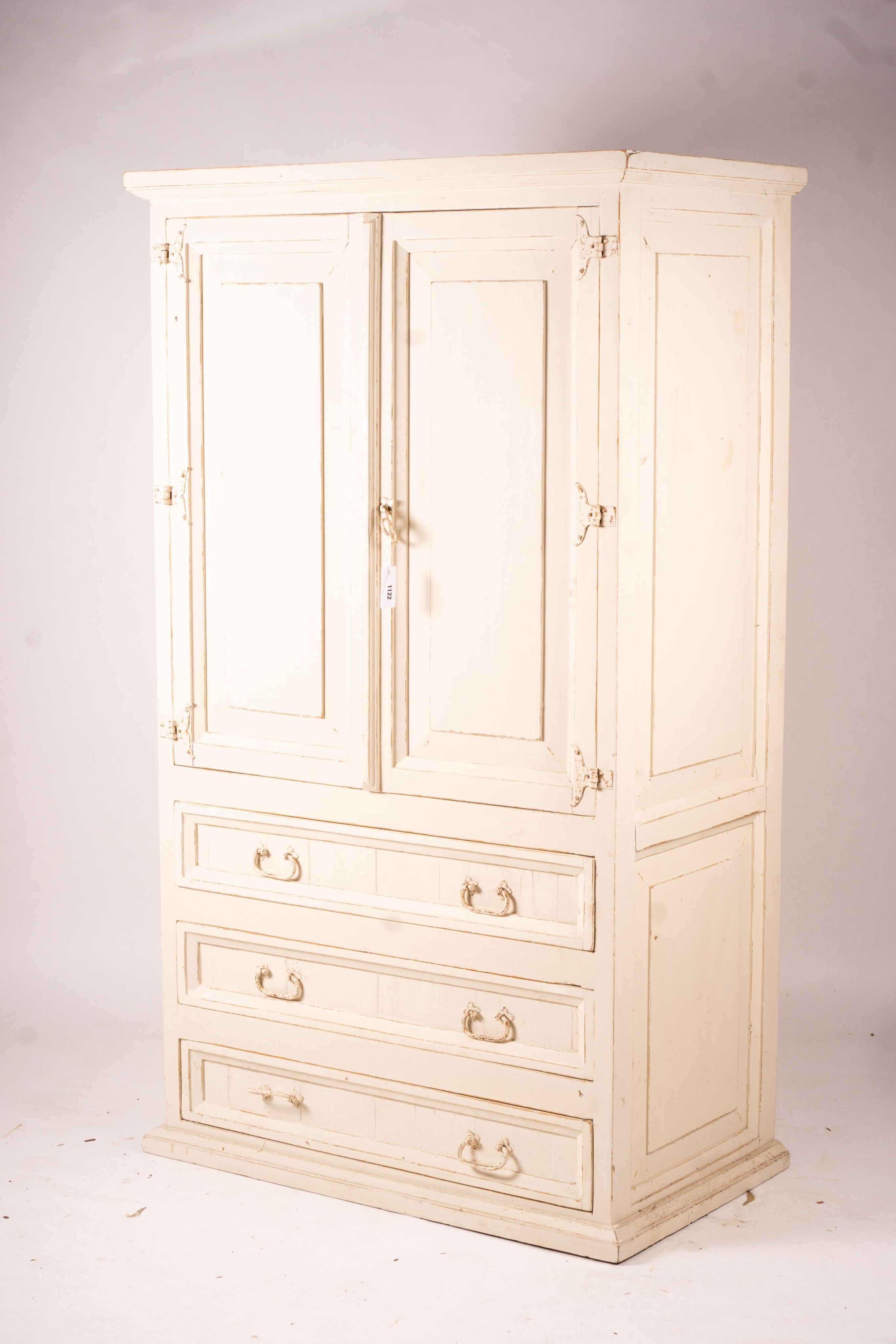 Lot 1122 , A 19th century Continental painted pine press cupboard, length 105cm, depth 62cm, height 182cm