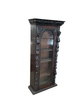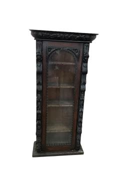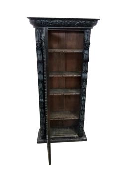 Lot 1058 , A 19th century Flemish carved glazed oak narrow bookcase, width 68cm, depth 29cm, height 147cm