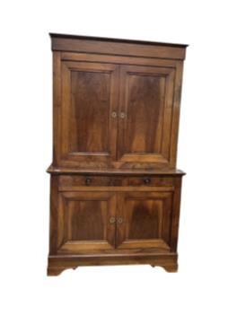 Lot 85 , A 19th century French Biedermeier walnut side cabinet, width 125cm, depth 58cm, height 214cm