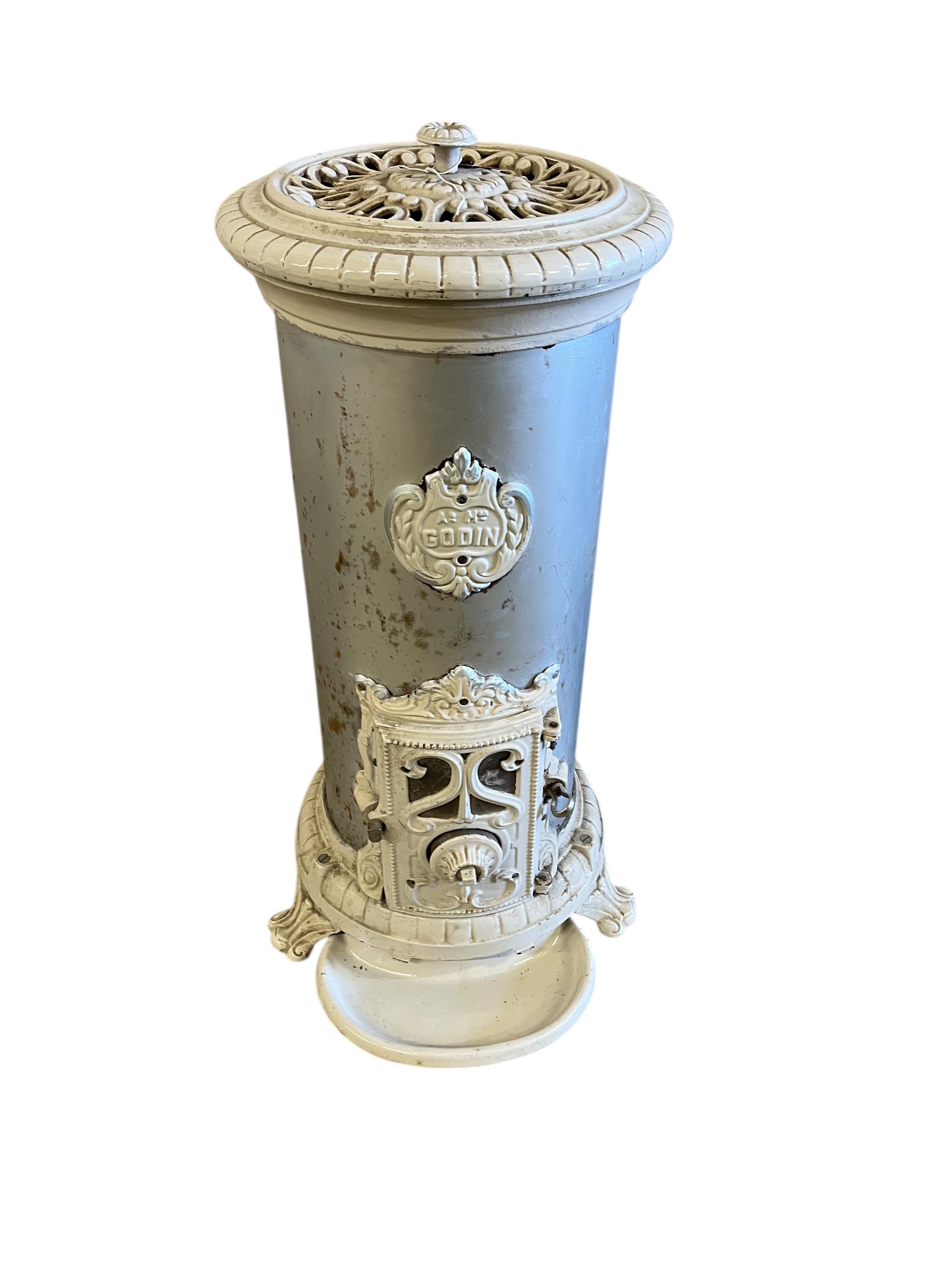 Lot 100 , A 19th century French Godin cast iron stove, height 96cm