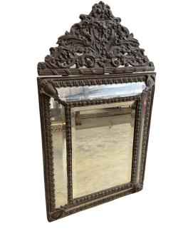 Lot 80 , A 19th century French embossed brass wall mirror, width 59cm, height 102cm