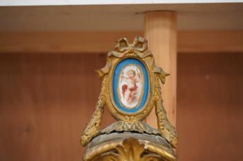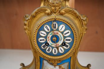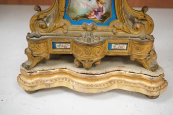 Lot 1274 , A 19th century French gilt metal mantel clock in Sevres style with gilt wood stand, 40cm total height