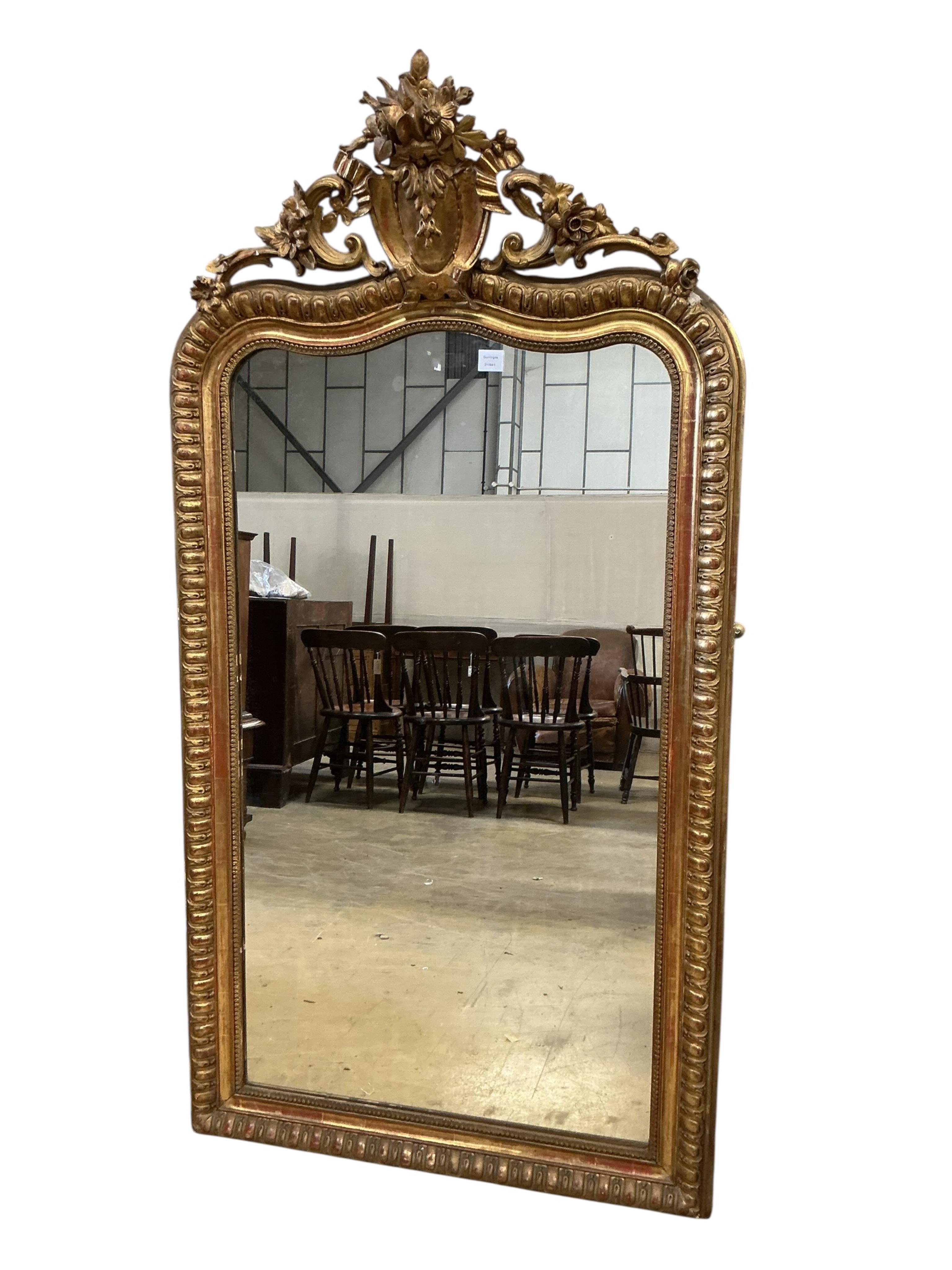 Lot 1260 , A 19th century French giltwood and composition pier glass, with floral cartouche pediment, width 95cm, height 183cm