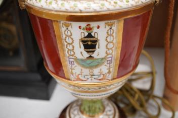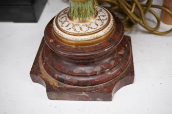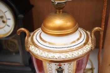 Lot 1354 , A 19th century French porcelain vase mounted as a table lamp on rouge marble base - 38cm high