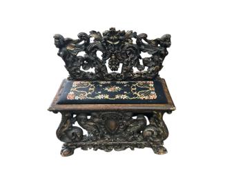 Lot 36 , A 19th century Italian giltwood and later painted carved bench, width 95cm, depth 46cm, height 92cm