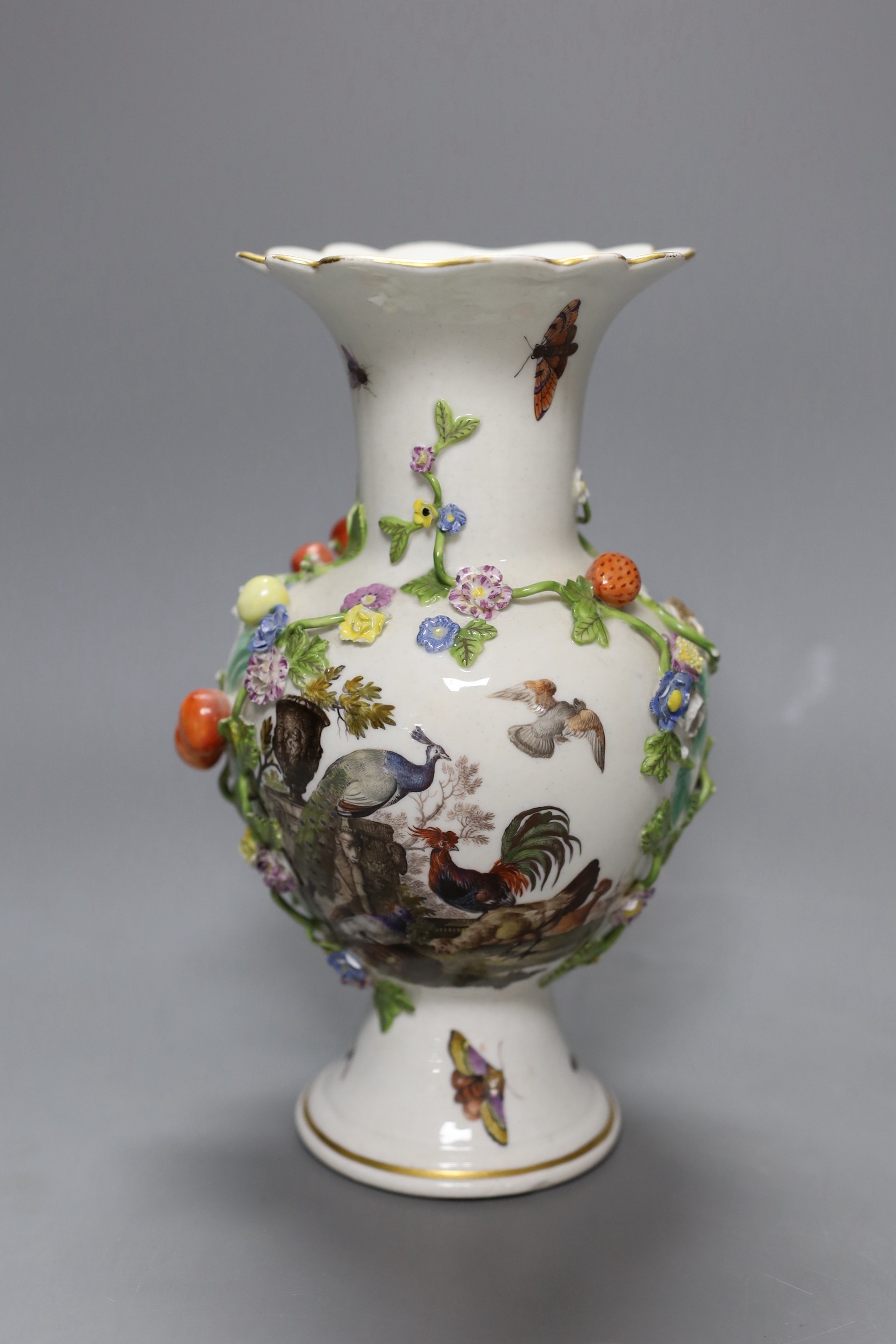 A 19th century Meissen floral encrusted vase decorated with birds and insects, 22cm