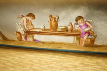 Lot 422 , A 19th century Paris porcelain planter, hand painted with a wine making scene and kitchen scene, with lead liner, 55cm wide