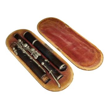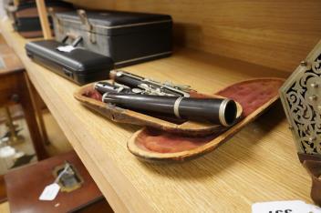 Lot 358 , A 19th century cased ebony flute, with ten key system, unsigned, the case af