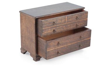 A 19th century oak tabletop chest of drawers. 22.5cm high, 31cm width