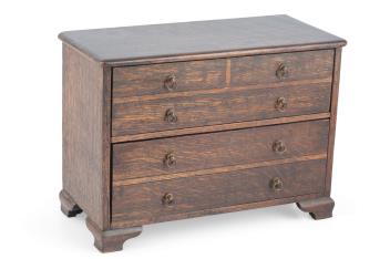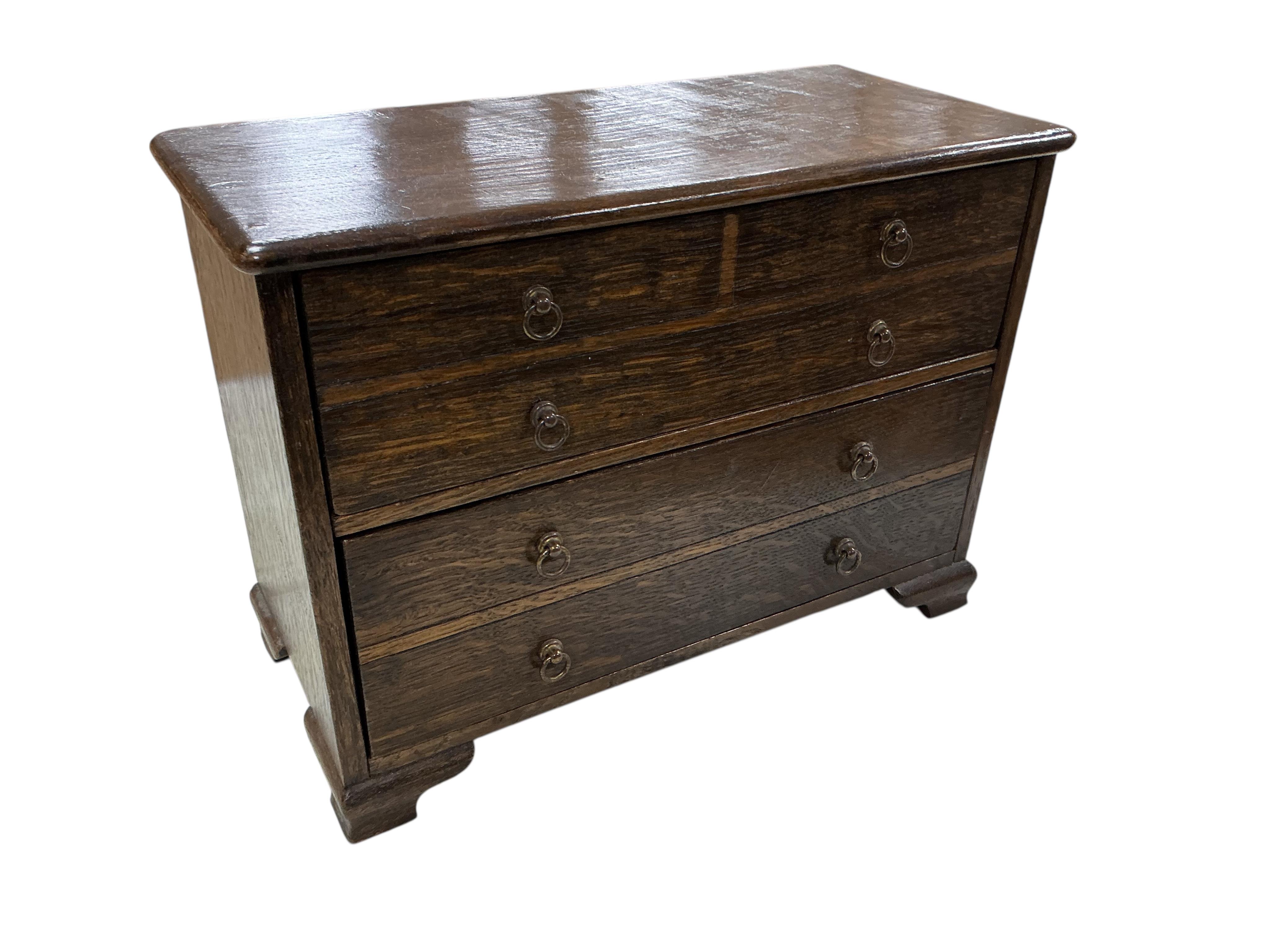Lot 522 , A 19th century oak tabletop chest of drawers. 22.5cm high, 31cm width