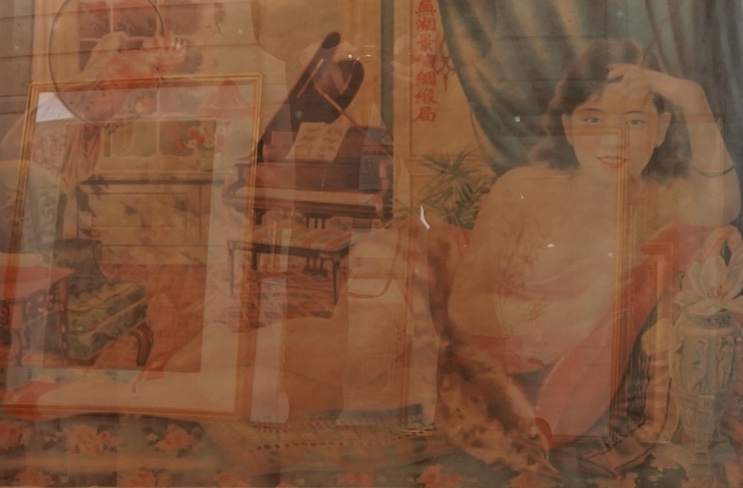 A 20th century Chinese interwar poster, depicting a semi nude reclining woman, 48 x 73cm