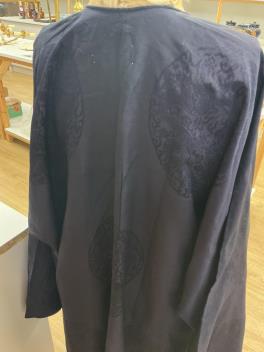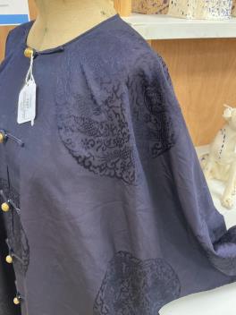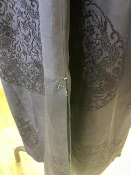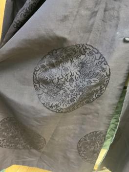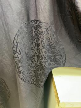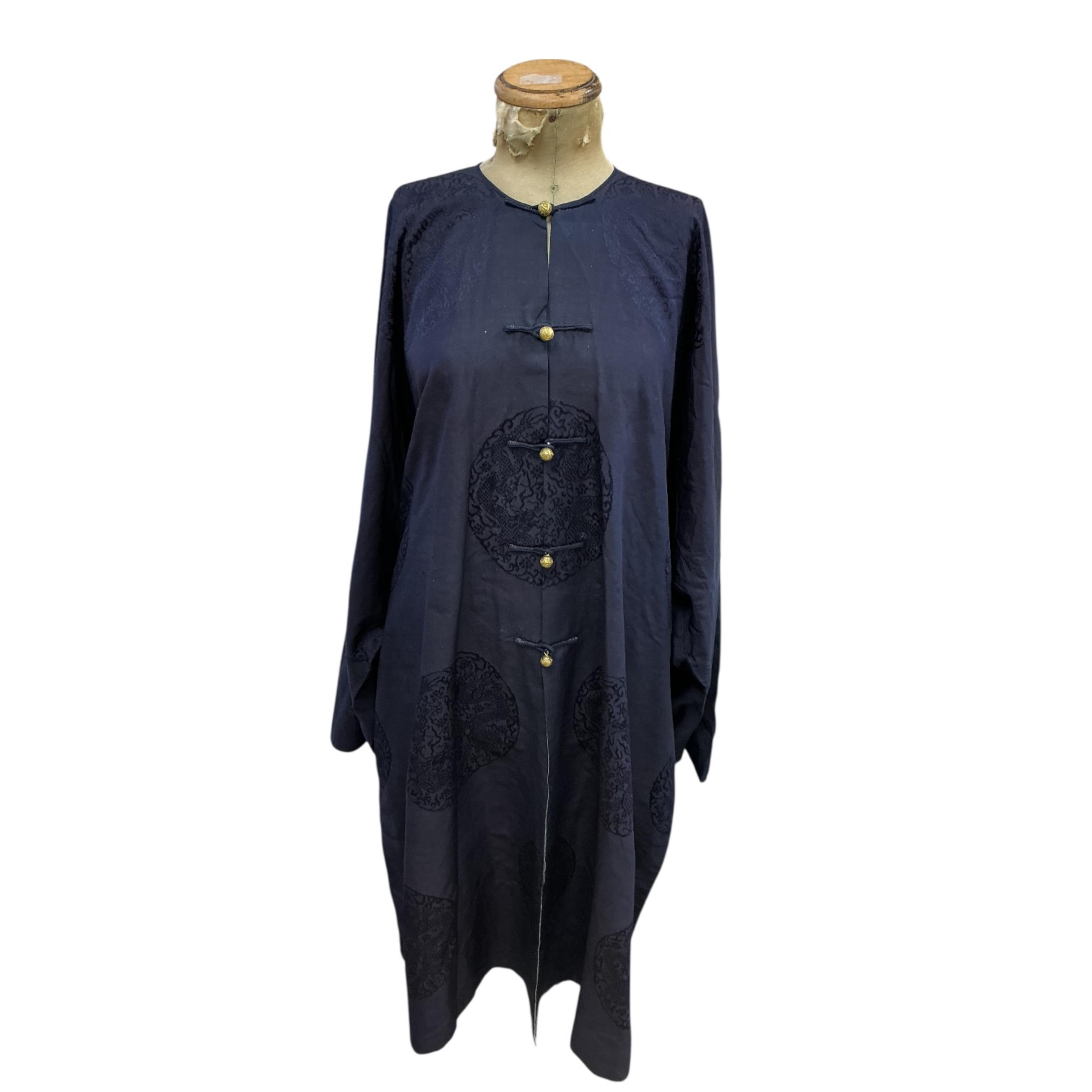 Lot 1307 , A 20th century Chinese silk damask robe designed woven dragon roundels and turquoise silk lining. Approximately 117cm long from nape of neck.