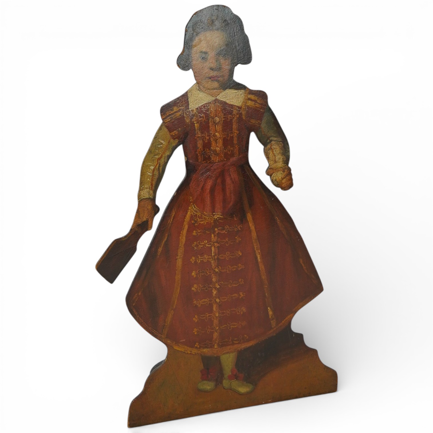Lot 12 , A 20th century fireplace dummy board of young woman in costume, height 92cm.