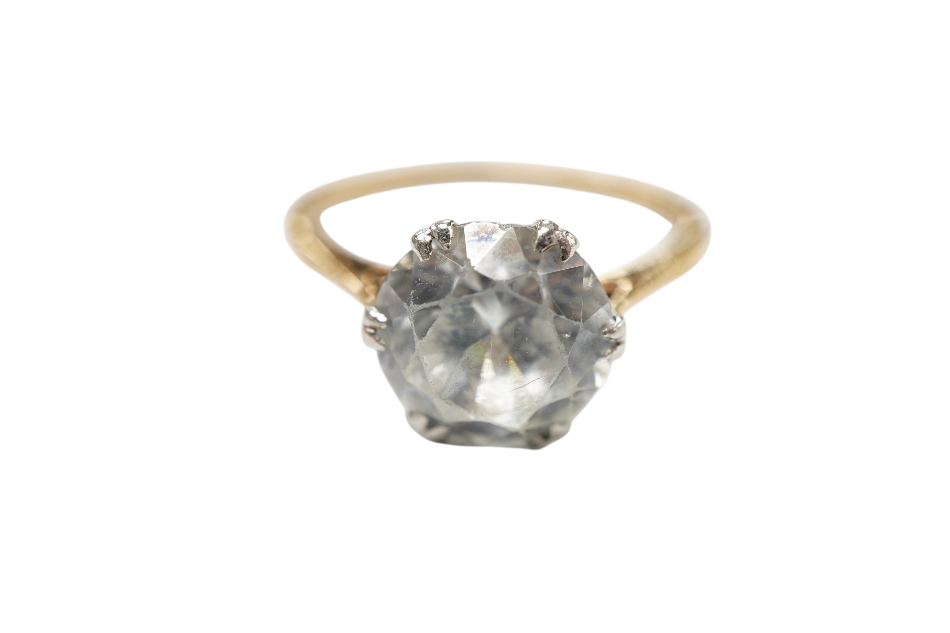 Lot 1927 , A 9ct, plat and solitaire simulated diamond set ring, size Q.