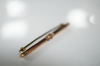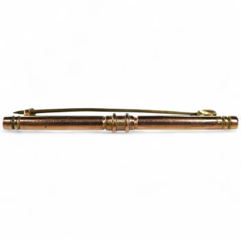 Lot 942 , A 9ct gold Edwardian bar brooch, early 20th century, length approximately 4.3cm, stamped 9CT, gross weight approximately 3 grams