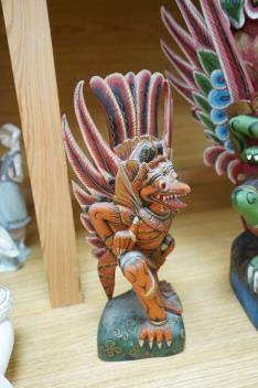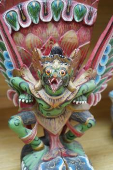 Lot 451 , A Balinese painted and carved wood sculpture of Garuda, together with a smaller similar carving, largest 46cm high