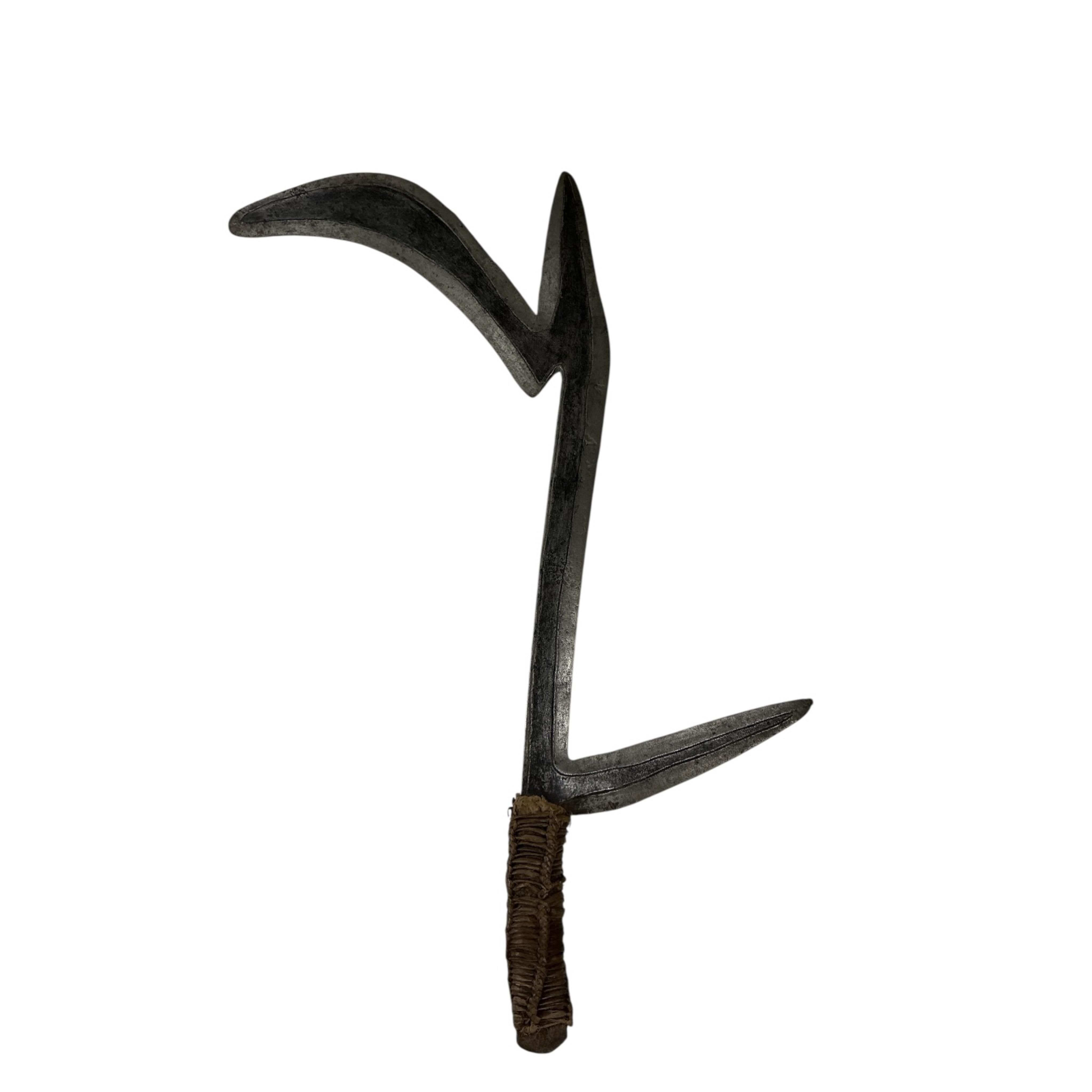 Lot 1423 , A Banda throwing knife, Cameroon, with a two tone blade and a woven fibre grip, 38.5cm long