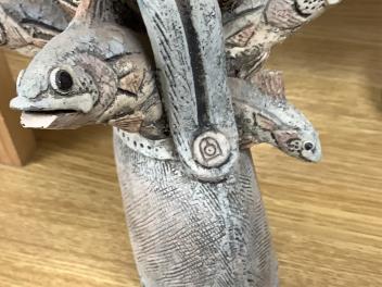 Two fish jaws chipped and incomplete, images 6 and 7; otherwise good. Signed, see 6th image.