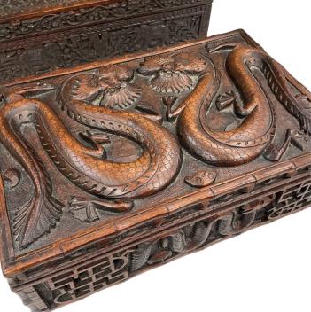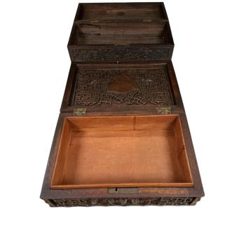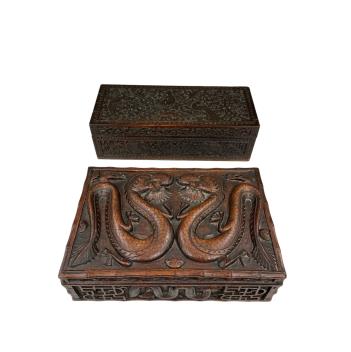 Lot 1421 , A Burmese carved wooden box and a carved Indian box, largest 34cm wide
