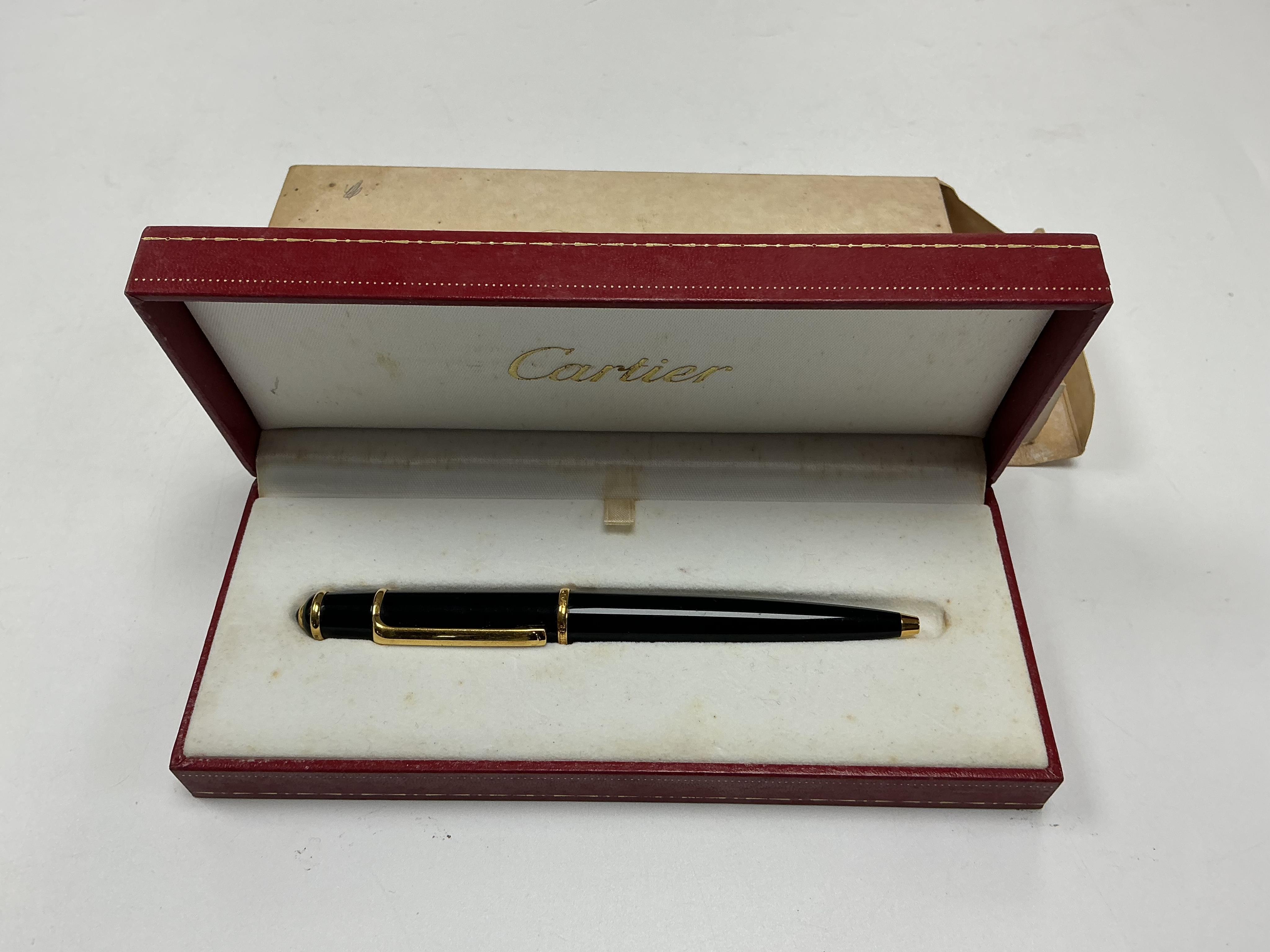 Lot 93 , A Cartier Santos ballpoint pen in black, in original box