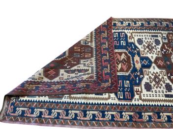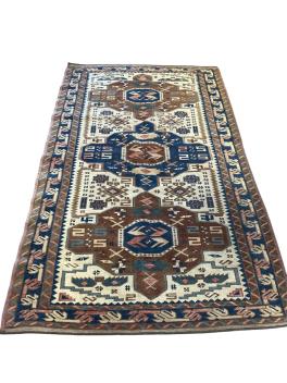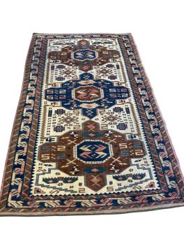 A Caucasian polychrome rug and an Afghan rust coloured rug, larger 180 x 110cm
