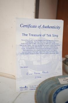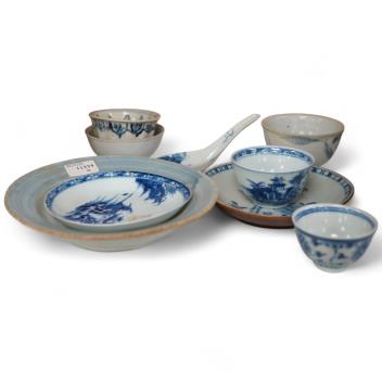 A Chinese Nanking cargo tea bowl, two saucers, Teksing cargo, cargo tea wares and a Guangxu miniature tea bowl-5cm diameter