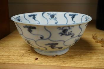 Lot 405 , A Chinese Tek Sing cargo blue and white bowl, mid 19th century, 15.5cm