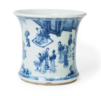 Lot 87 , A Chinese blue and white 'ladies' brush pot, possibly Kangxi period