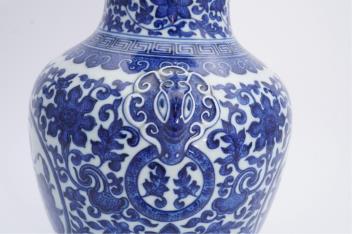 Lot 368 , A Chinese blue and white 'peaches' vase, Qianlong mark but later, 27cm high. Condition - good