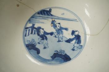 A Chinese blue and white bowl, Kangxi period, 20.5cm diameter