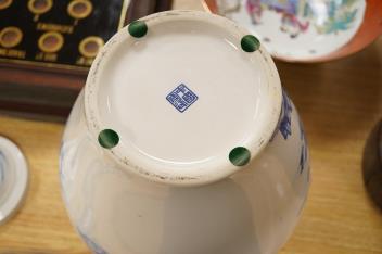 Lot 426 , A Chinese blue and white ovoid shaped vase and cover on stand and a Japanese Kutani bowl decorated with figures, largest 46cm high