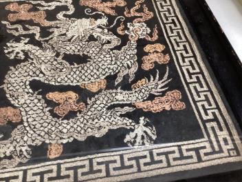 Lot 1370 , A Chinese brocade dragon square, early 20th century, 35 x 35cm.