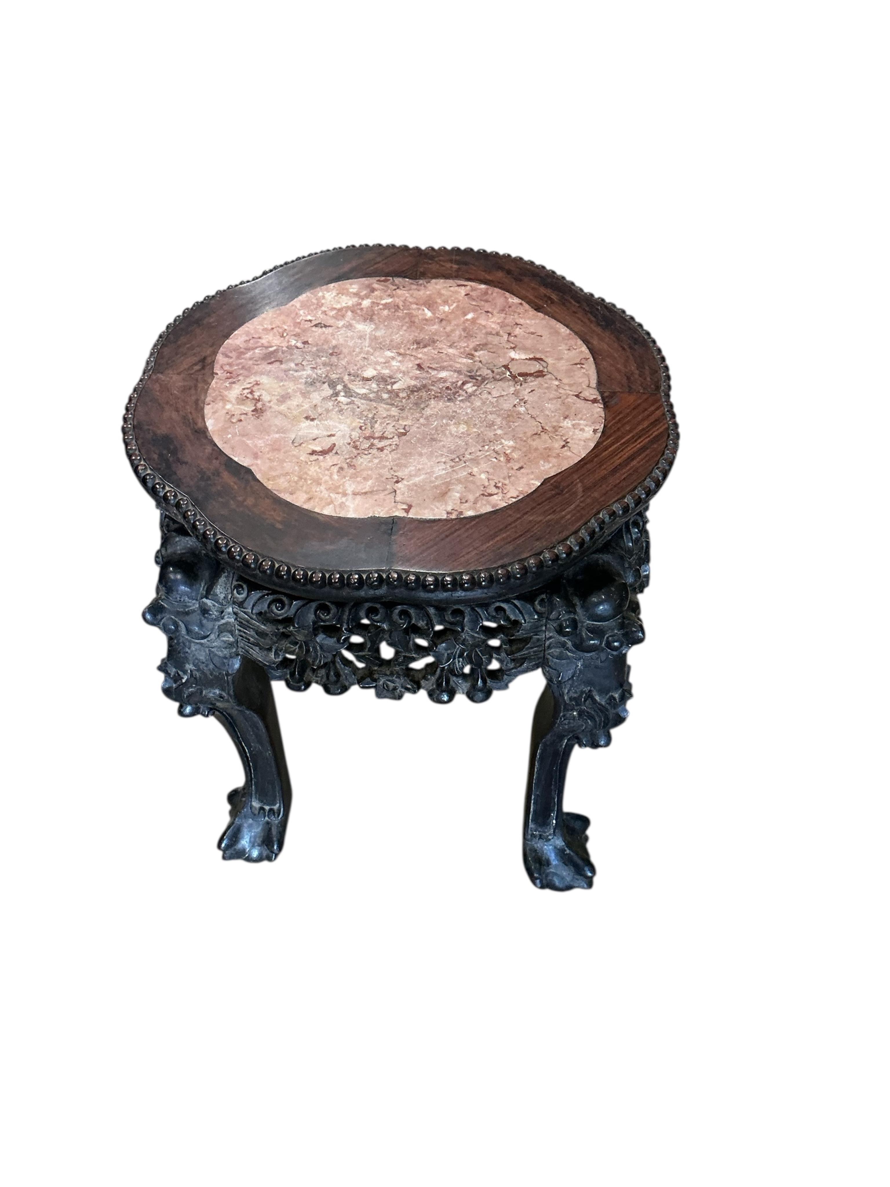 Lot 1105 , A Chinese circular padouk marble top vase stand, diameter 41cm, height 46cm