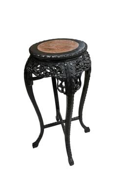 Lot 91 , A Chinese circular rouge marble topped carved hardwood vase stand, diameter 44cm, height 91cm