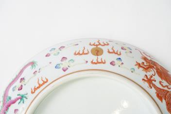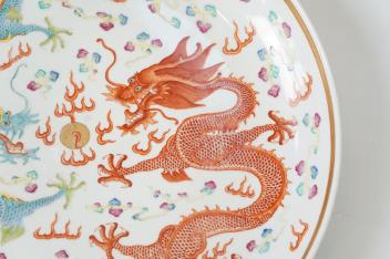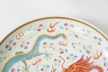 Lot 156 , A Chinese enamelled porcelain 'dragon' dish