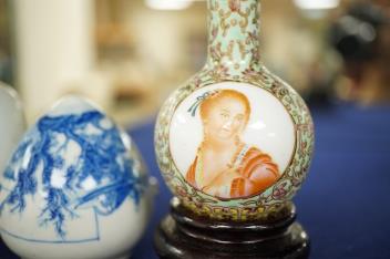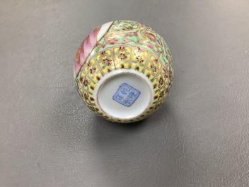 The vase has some minor wear to the gilding. The snuff bottle has a few minor surface nicks, abrasions and scratches
