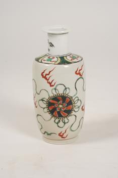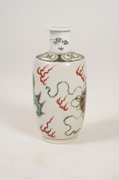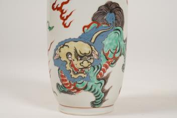 Lot 88 , A Chinese famille verte 'Buddhist lion' rouleau vase, probably Kangxi period