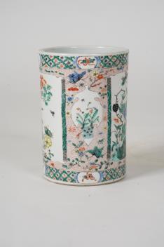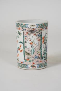 Lot 131 , A Chinese famille verte brushpot, late 19th/early 20th century