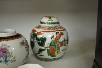Lot 1432 , A Chinese ginger jar, Samson ginger jar, Hilditch cup and saucer, other tableware to include coffee cans, largest 15cm high