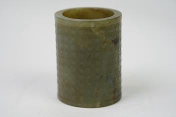 Lot 201 , A Chinese green jade cylinder, Warring States period